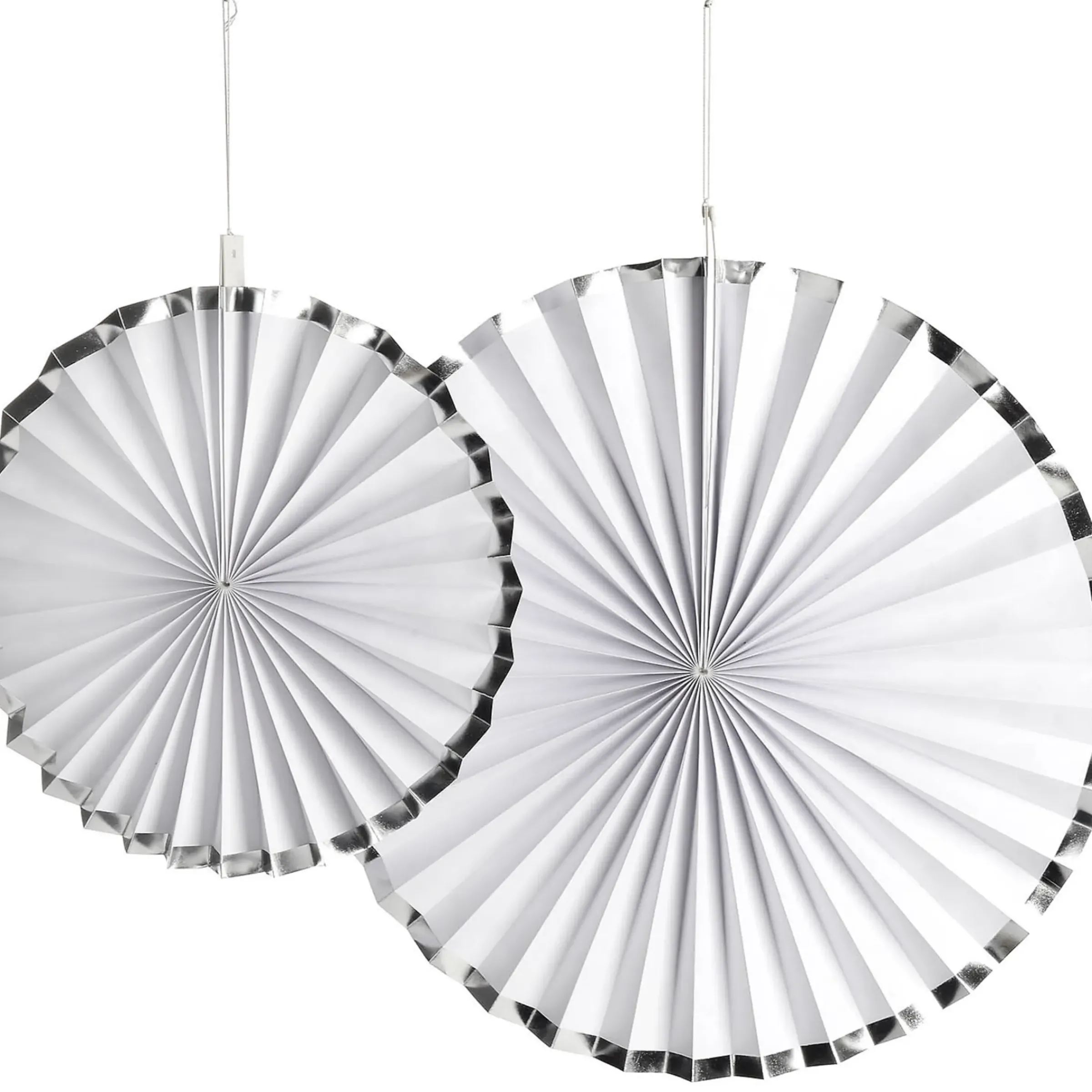 Dieses Deko-Objekt Fallt Sofort Ins Auge! Der Interessante Facher Ist Aus Papier Gefertigt Und Punktet Mit Dem Eleganten Silberrand. Sie Konnen Ihn An Beliebiger Stelle Von Der Decke Hangen Lassen, Aber Auch Auf Einer Dunklen Wand Sieht Er Sehr Beeindruckend Aus. Er Kommt In Einem 2Er-Set Und Ist Auch Als Geschenk Immer Eine Ausgefallene Idee.