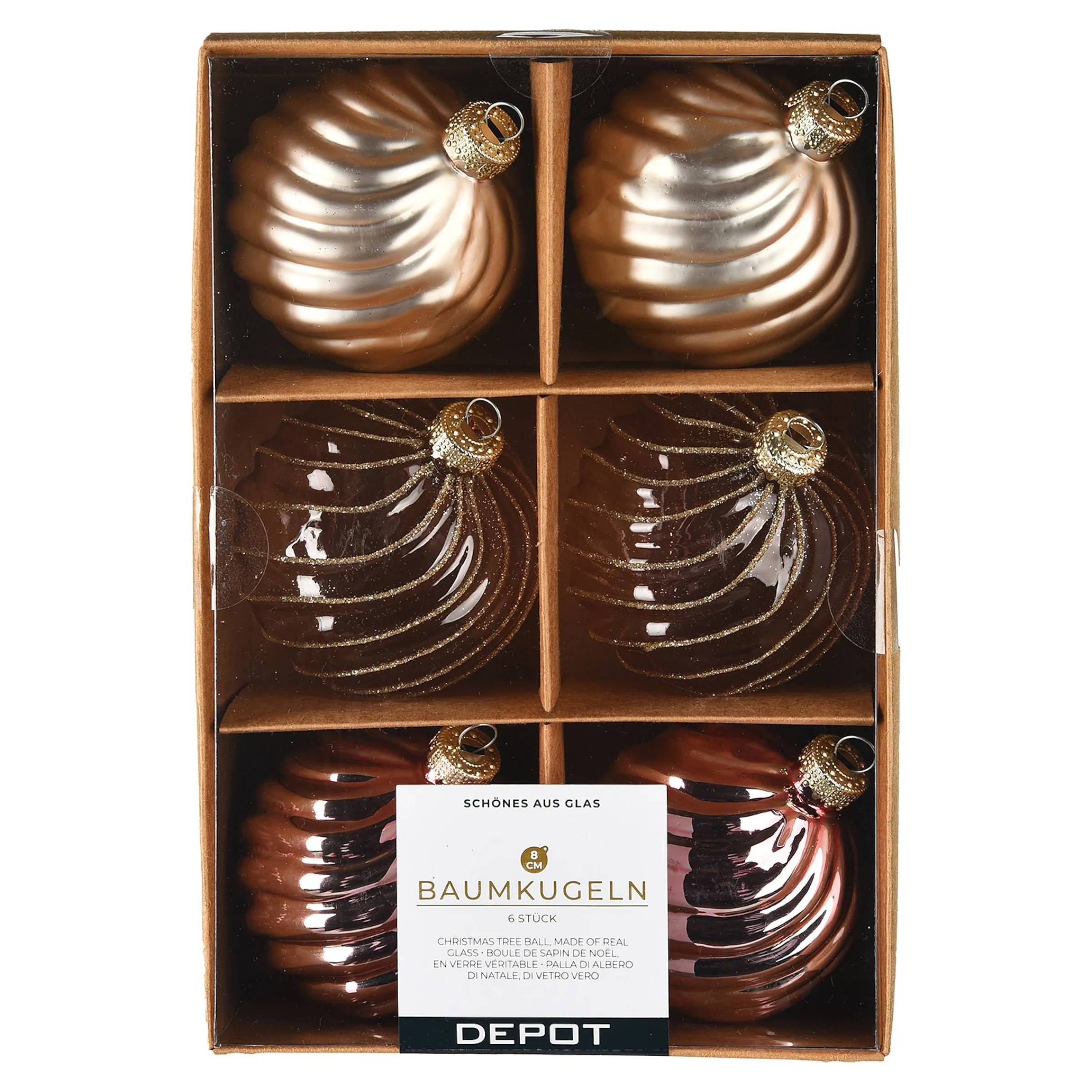 Depot Kugeln & Baumspitzen^Glas-Weihnachtskugel-Set Spiral
