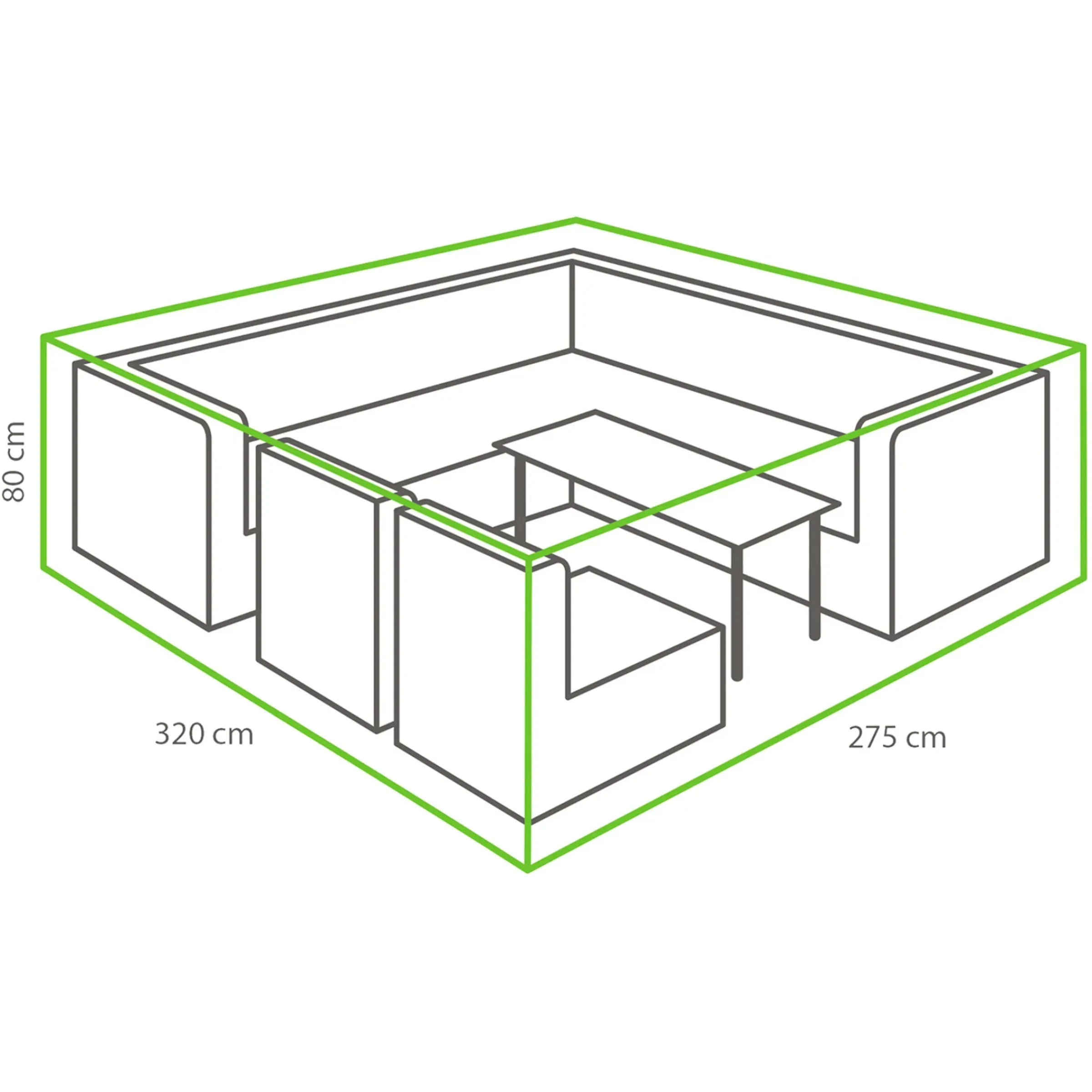 Schutzhulle Für Ein Groses Lounge-Set. Die Hulle Ist Gefertigt Aus Hochwertigem Und Haltbarem Polypropylen Mit Einer Wasserdichten Beschichtung (Auch Die Nahte). Sie Ist Uv-Bestandig Und Farbbestandig. Der Schutz Deines Lounge-Sets Ist Sehr Wichtig, Um Dessen Lebensdauer Zu Verlangern, Denn Uv-Strahlung, Regen Und Frost Haben Grosen Einfluss Auf Das Material Deines Lounge-Sets. Eine Schutzhulle Schutzt Deinen Lounge-Set Vor Diesen Witterungseinflussen. Auserdem Bleibt Dein Lounge-Set Von Staub Und Schmutz Geschutzt. Mithilfe Des Mitgelieferten Pins Schiebst Du Die Schutzhulle Einfach Uber Deinen Lounge-Set. Mit Der Kordel An Der Unterseite Der Hulle, Befestigst Du Dann Die Hulle.