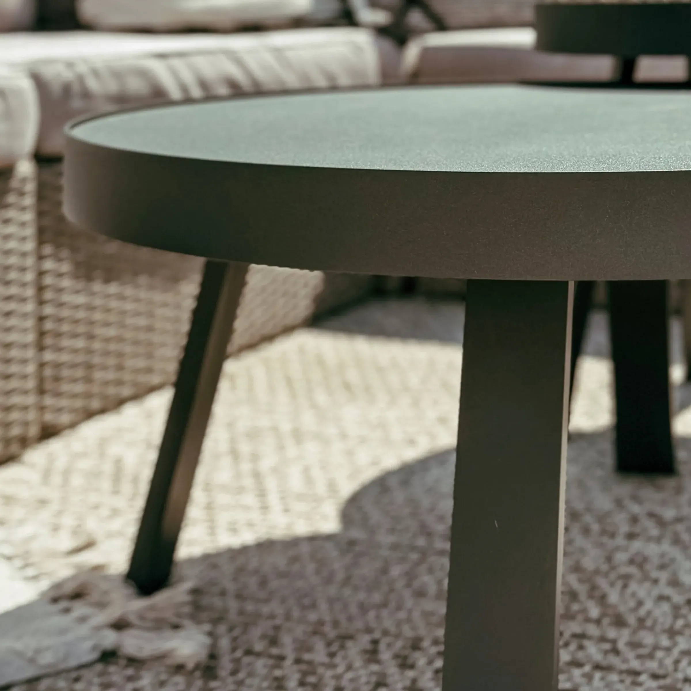 Geniese Die Lauen Sommerabende Mit Dem Modernen Outdoor-Loungetischalessia. Dieser Handgefertigte, Runde Terrassentisch Aus Robustemaluminium In Elegantem Schwarz Ist Ein Stilvolles Wohnaccessoire Für Deinegartenzeit.