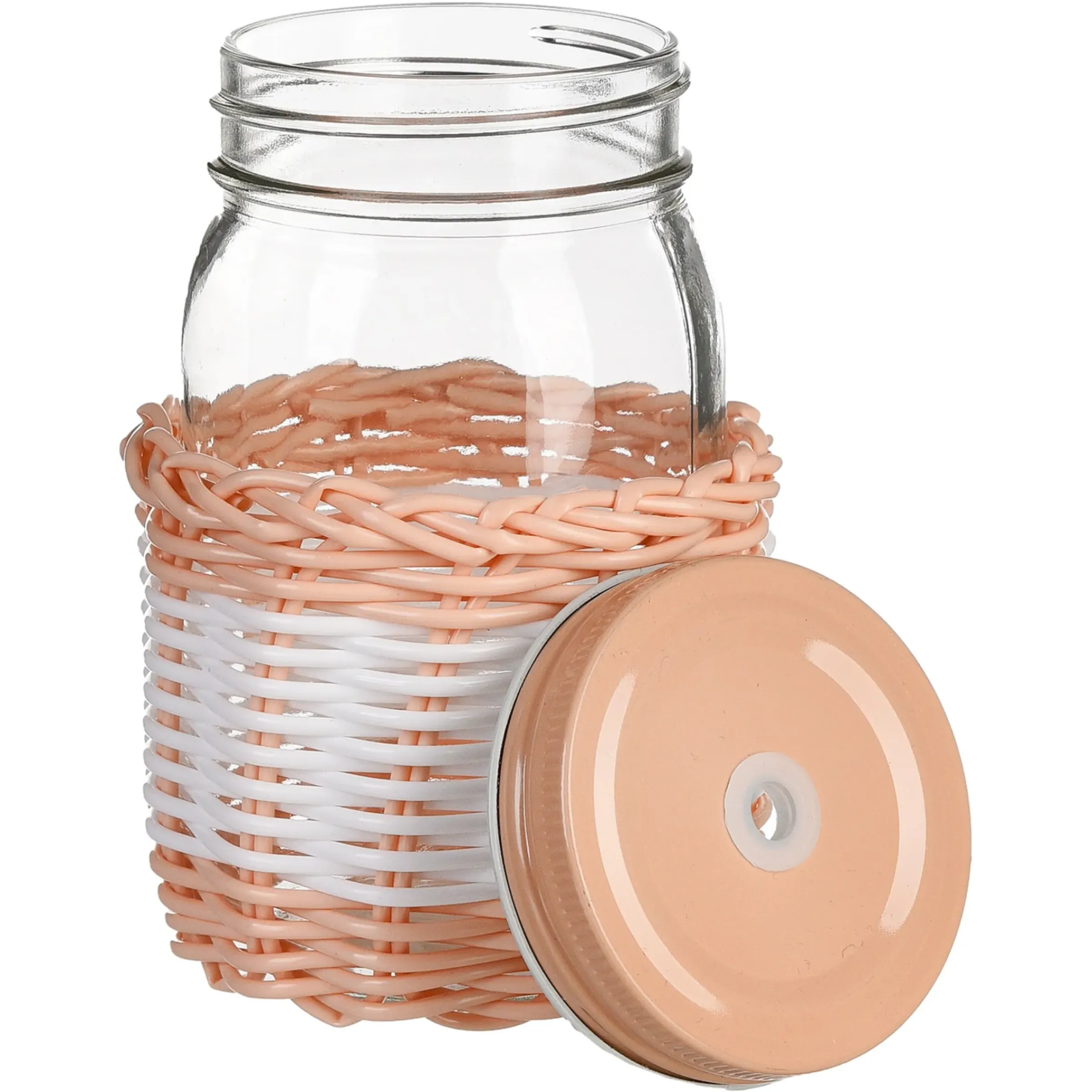 Der Deckel Unseres Trinkglases Colourwick Kann Ganz Einfach Per Drehverschluss Aufgesetzt Werden. Er Verfugt Uber Ein Kleines Loch, In Welchem Du Deinen Trinkhalm Platzieren Kannst. Perfekt Also, Um Insekten Von Deinem Leckeren Getrank Fernzuhalten!